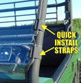 QUICK INSTALL STRAPS-The Quick Install Straps provide the quickest and easiest installation of a windshield on the market. NO TOOLS REQUIRED! Made of military-grade hook and loop, simply thread the straps through the windshield slots, mount, and attach. IT'S THAT EASY.Â