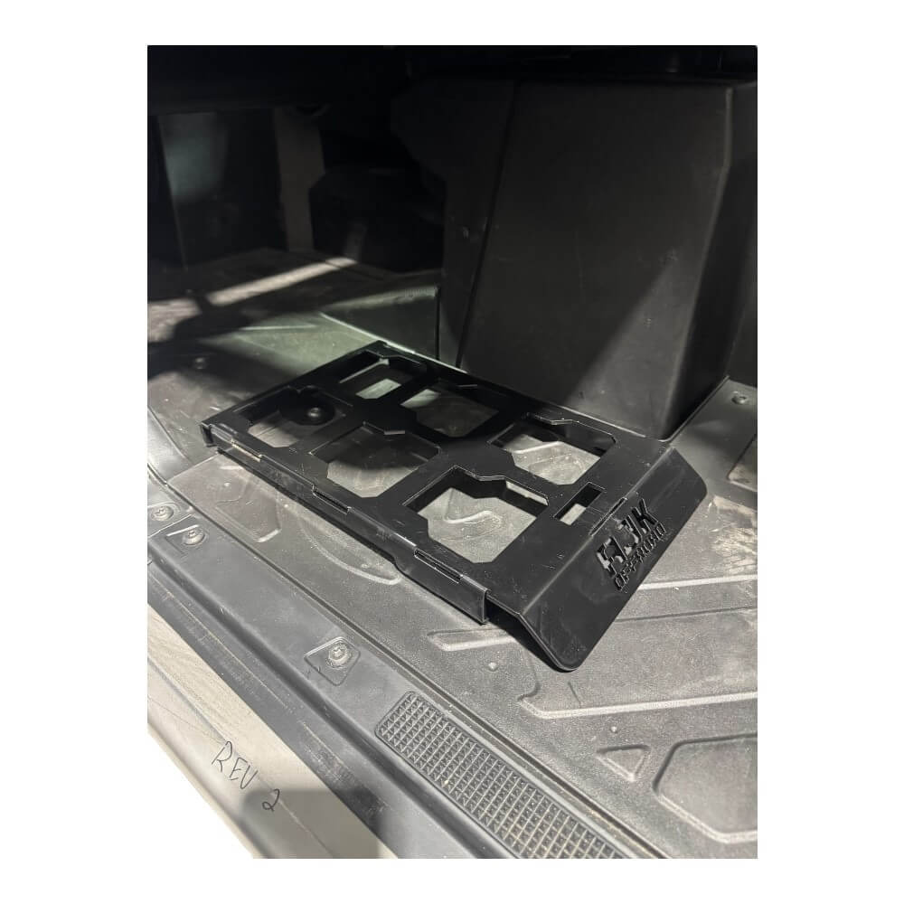 Our Heavy Duty Polaris Ranger 1500XD Under Seat Packout Mount is a great way to carry your extra gear.  This mount is able to hold one small packout mount that is shorter that 11.5" tall.  Anything over 11.5" tall will not fit under the seat.  This mount utilizes the factory bolts in the floor so no drilling is required and is a direct bolt in.  This mount fits nicely under the passenger seat.