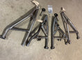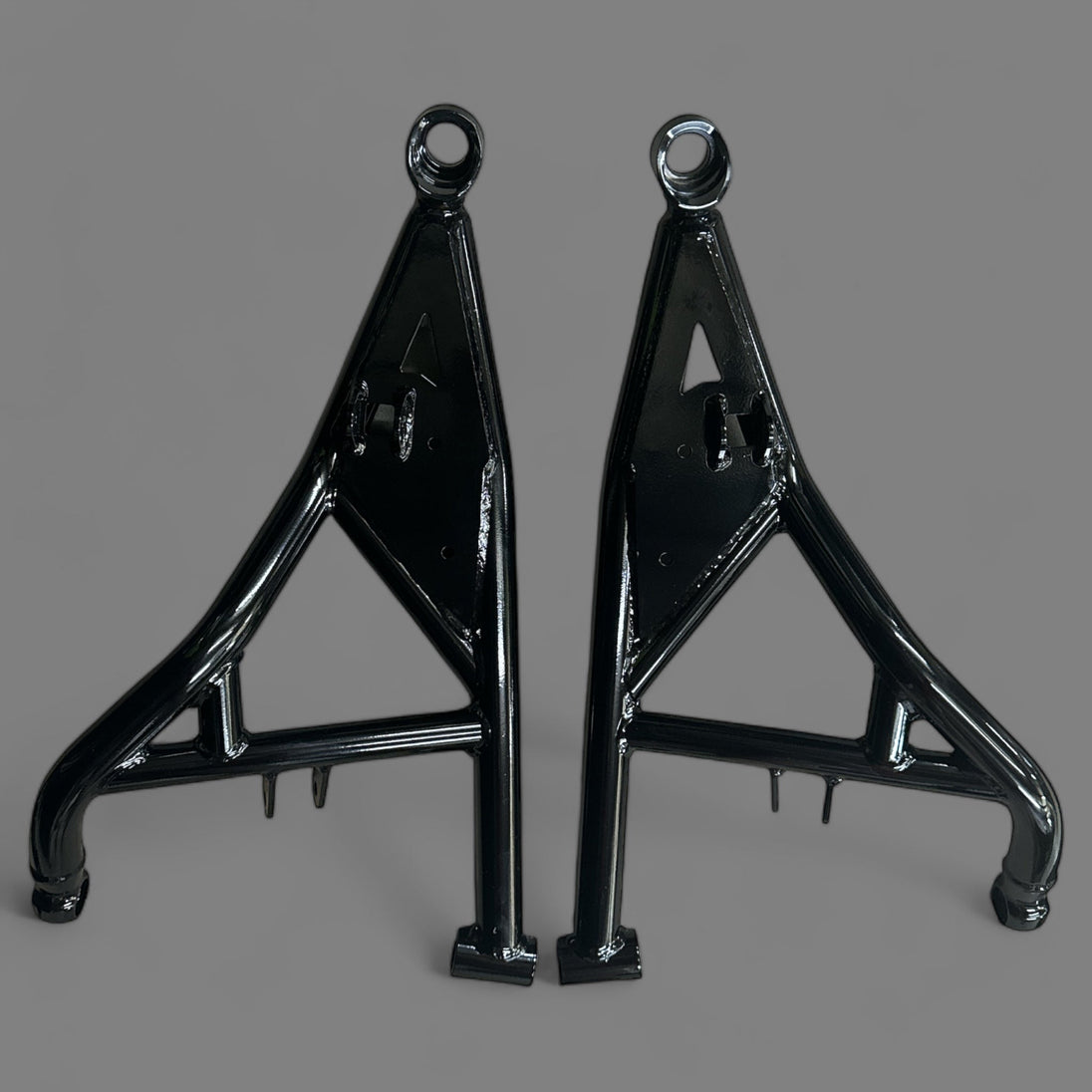 The A Arms are 1.75″ Forward. The adjustable pins have a 1 inch diameter.