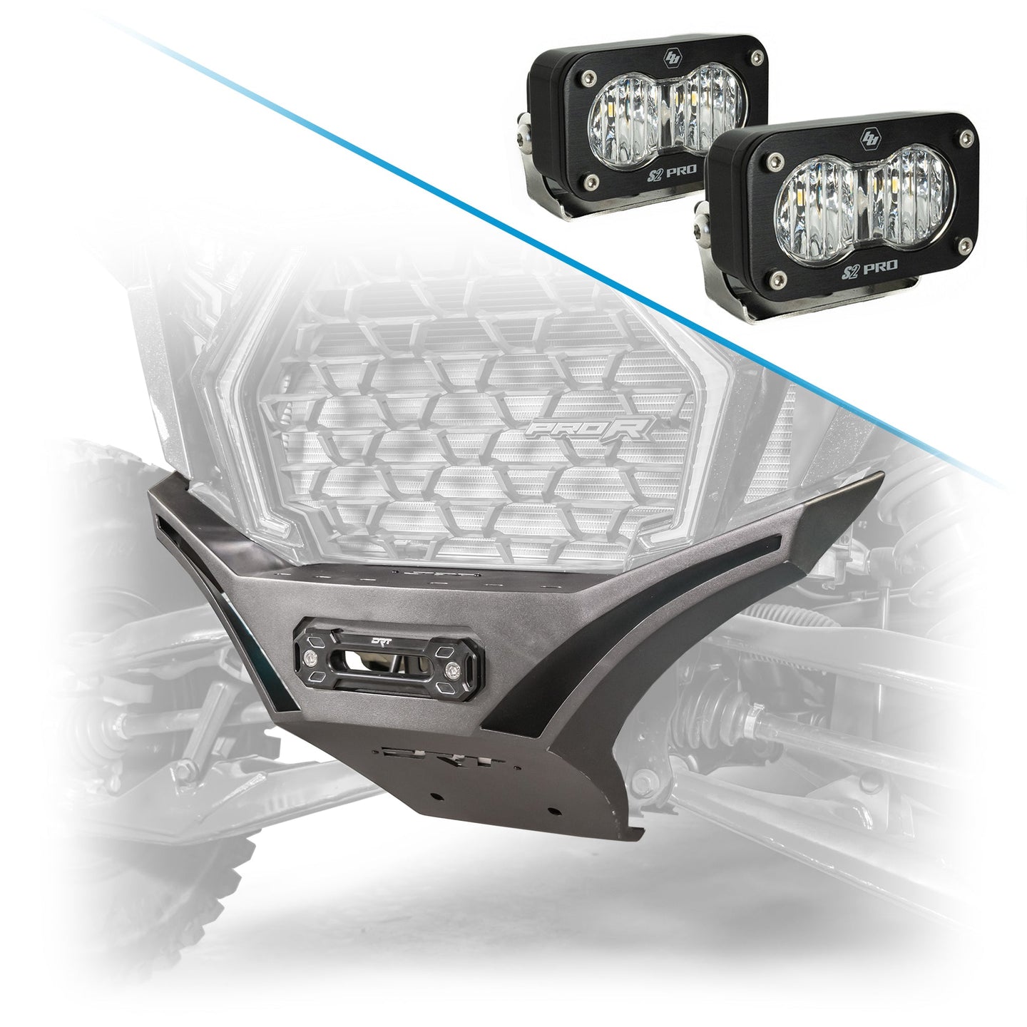 DRT Motorsports Polaris RZR Pro XP 2020+ V2.0 HD Front Winch Bumper also features slotted holes for a convenient location for mounting lights / light bars to the front of your vehicle.