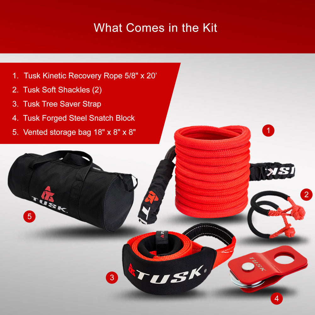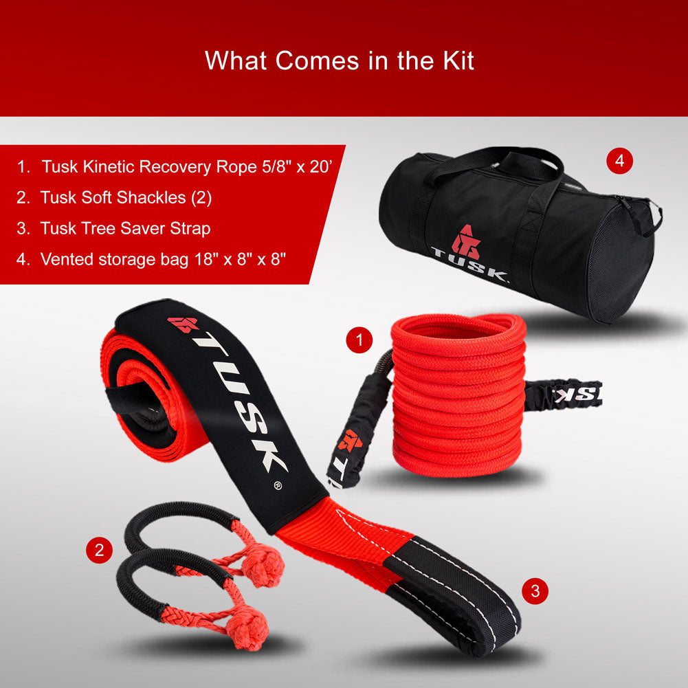The Tusk UTV Kinetic Recovery Kit provides a comprehensive solution for off-road enthusiasts who need a reliable and efficient way to recover stuck vehicles. Designed specifically for the demands of UTV and side-by-side adventuring, these kits utilize kinetic energy to make recoveries smoother and safer than traditional static towing methods.