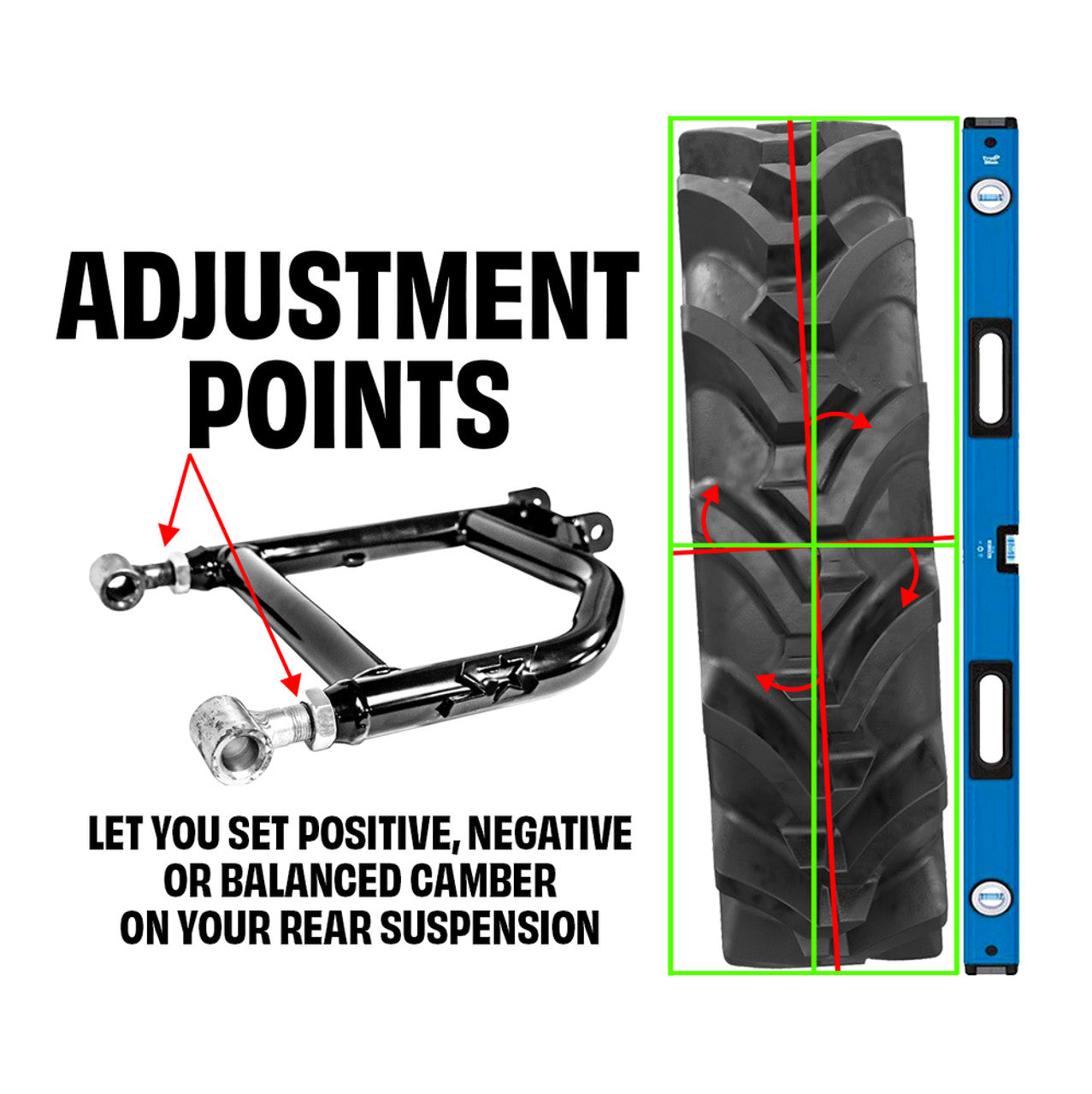Tired of your rear tires leaning in or out? Prevent premature wear on tires and suspension components by eliminating camber on your Can-Am Defender. Correct your rear suspension geometry with S3 Power Sports' Rear Adjustable Upper A-Arms. Our HD zinc-plated adjustable bushing tubes allow you to calibrate your rear camber to get that factory ride and appearance back. Built from thick-walled chromoly tubing, these a-arms will withstand the biggest tires and nastiest terrain. Our Rear Adjustable Upper A-Arms are a direct bolt-on replacement for both rear upper a-arms, and allows you to utilize OEM hardware.