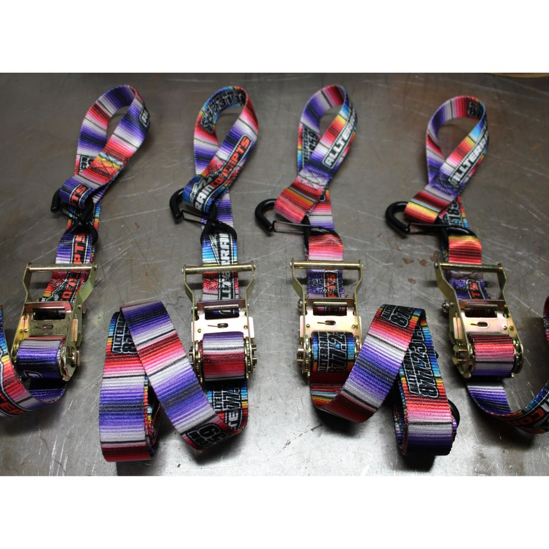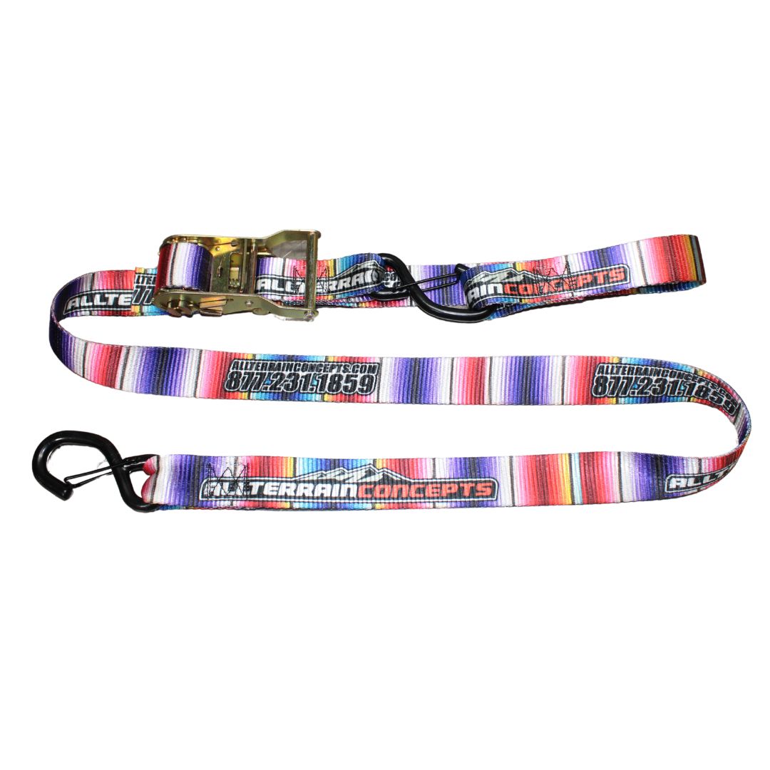 All Terrain Concepts heavy duty tie-downs are made out of quality materials and are strong enough to keep your load strapped in safely during transport! Straps come in colorful serape print and are available in sets of 2 or 4.