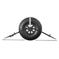 - Front tire bonnets encircle the 2 front wheels while the 2 dual-purpose rear straps can either secure the wheel, A-Arm, or any other strap location.