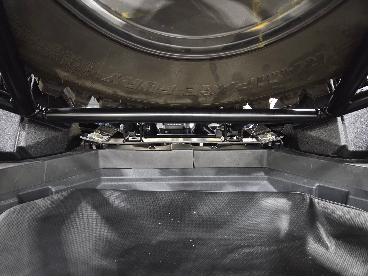 Here is our UTV Speed Tire Carrier with Shocks for the Polaris Pro R.